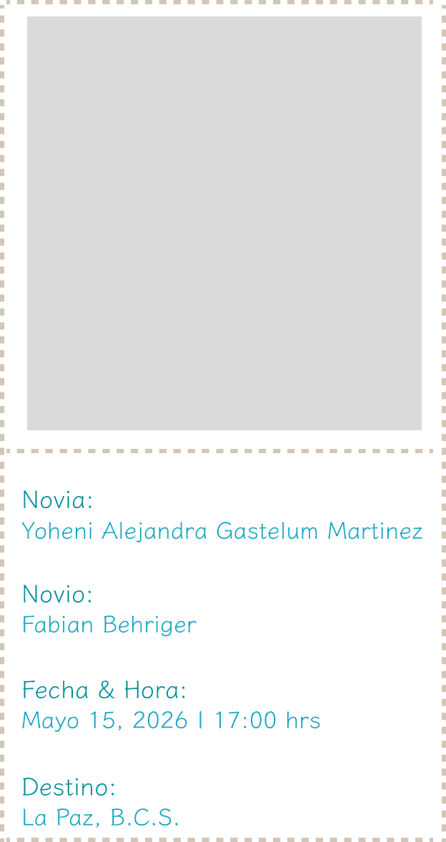 Para mantener la armonía visual de nuestra celebración, les pedimos gentilmenteevitar el uso de blanco, beige, rojo y negro. Queremos que nuestras fotos brillen con los colores del mar y la arena.